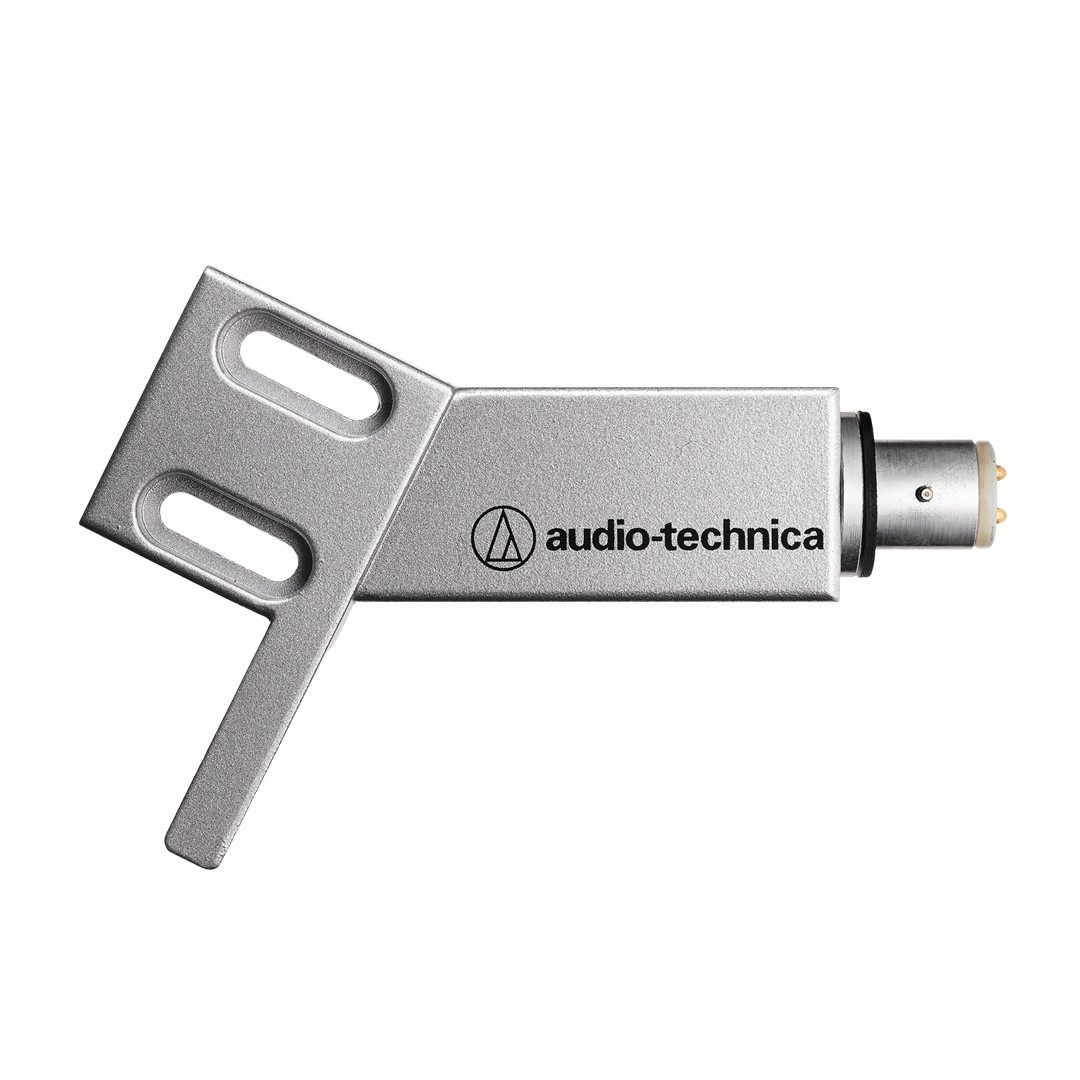 The Audio-Technica AT-HS4SV Universal Headshell Silver is designed for straight 4-pin tonearms with a universal ½" mount. Its ultra-lightweight aluminum body minimizes vibration, while the angled design ensures accurate stylus alignment. A built-in finger lift and color-coded lead wires offer enhanced control and easy cartridge installation. Ideal for audiophile setups.