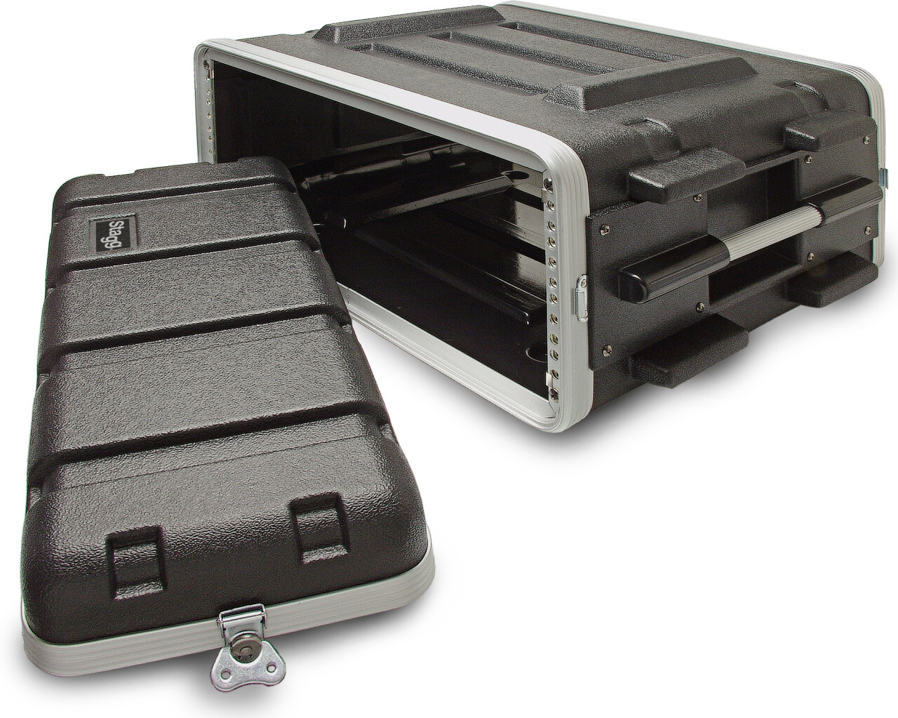 Removable front and rear lids(6 cm usual depth) with gasket sealed to protect equipment from moisture and dust, 2 front rails for rack-mount, 2 integral handles for easy portability