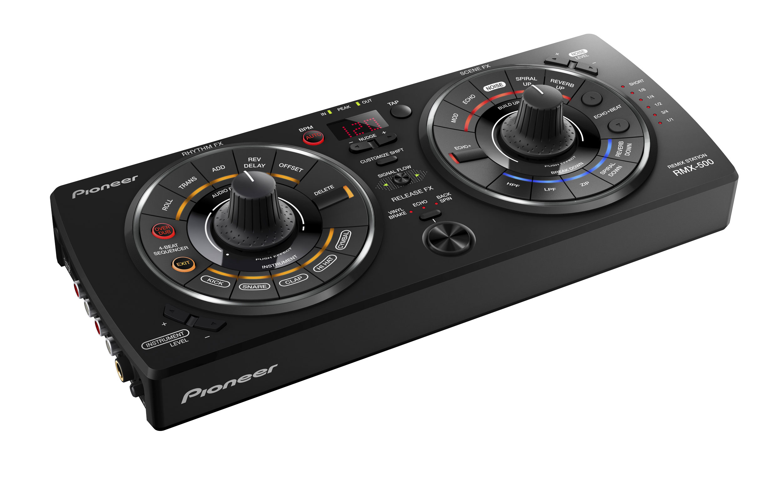 The REMIX STATION 500 offers three effect sections, Rhythm FX, Scene FX and Release FX, for simple musical arrangements and features the industry’s first “Pressure Controller” knobs, which further alter and vary the effects of the arrangements. In addition, the system can also act as a USB controller when used with the included VST1/AU2/RTAS3RMX-500 Plug-in software.