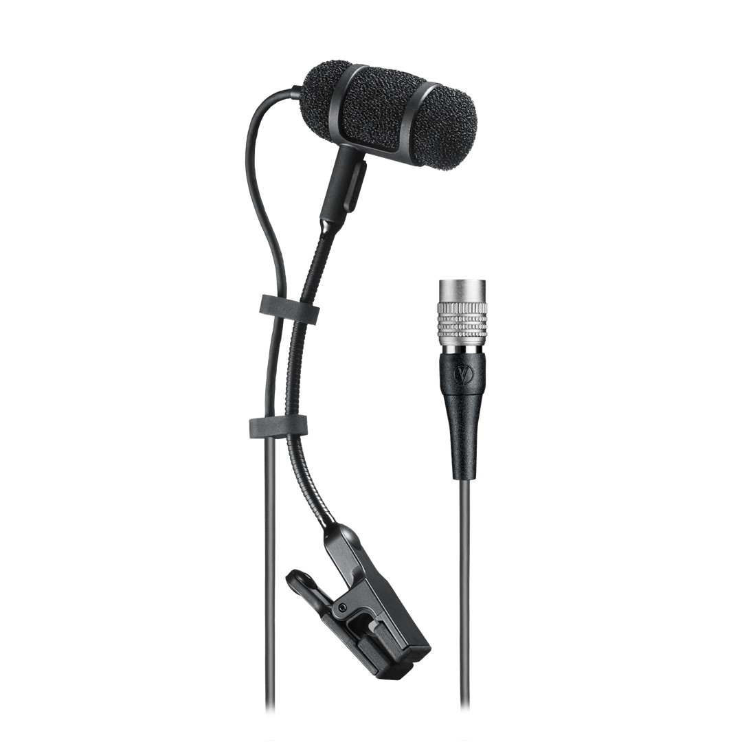 The Audio-Technica PRO35cW Cardioid Condenser Clip-On Instrument Microphone is designed for high-SPL applications like saxophones, toms, and brass. It offers a cardioid polar pattern for focused sound capture and comes with a durable UniMount® clip for secure placement. With extended frequency response and a 55" cable, it's perfect for Audio-Technica’s wireless transmitters.