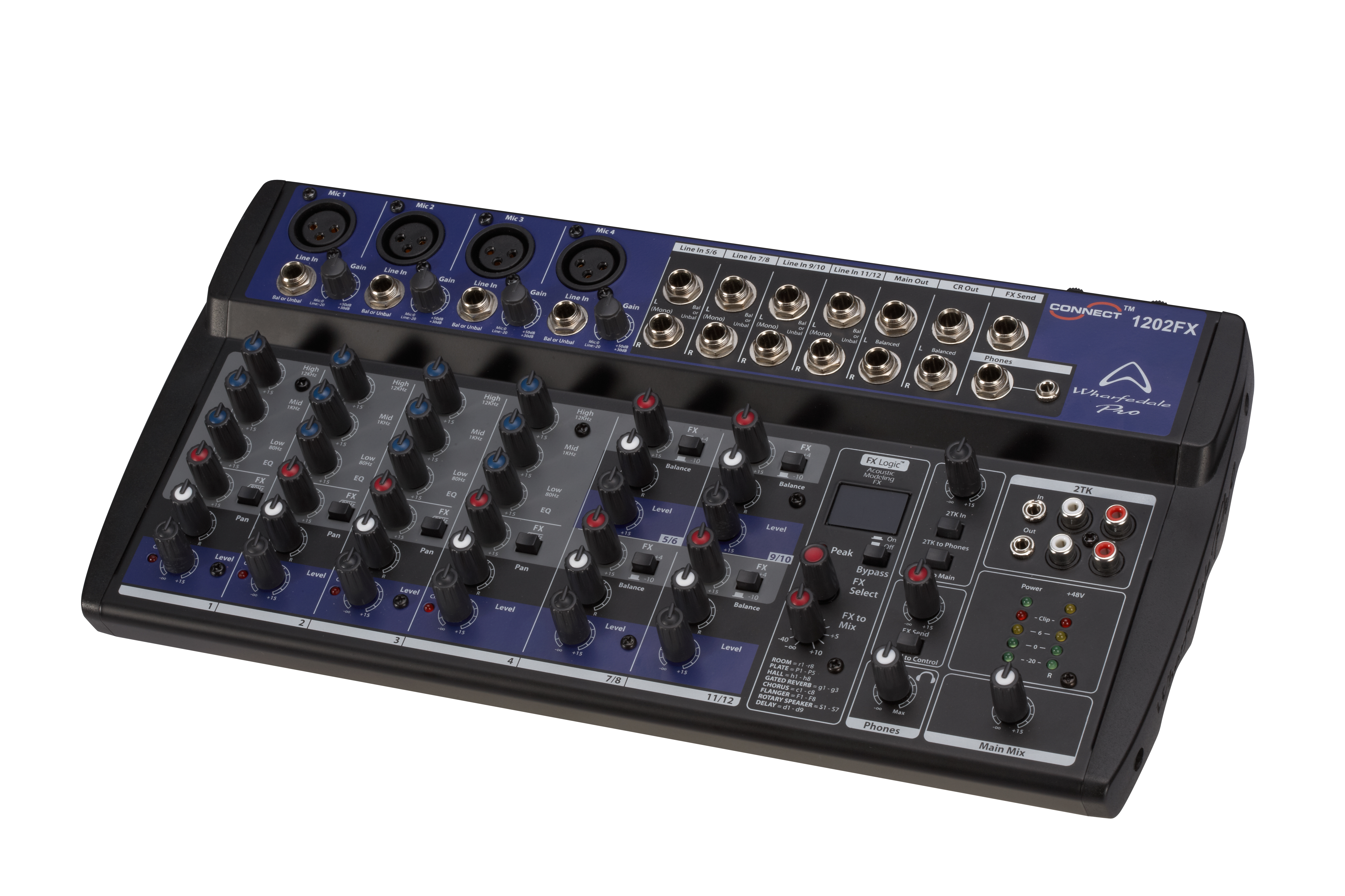 Connect 4 Mic, 2 Stereo inputs, 12-Channel Mixer; Switchable Phantom Power, FX with LED Display