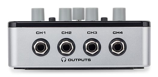 The QH4 features two balanced 1/4" inputs to connect with your mixer or recording interface, as well as a stereo 1/8" Aux input that's perfect for playing music via your smartphone or another line level device. In addition to the four stereo 1/4" headphone outputs, the QH4 provides a 1/8" Aux Out that can be used to daisy chain mutilple QH4s together.