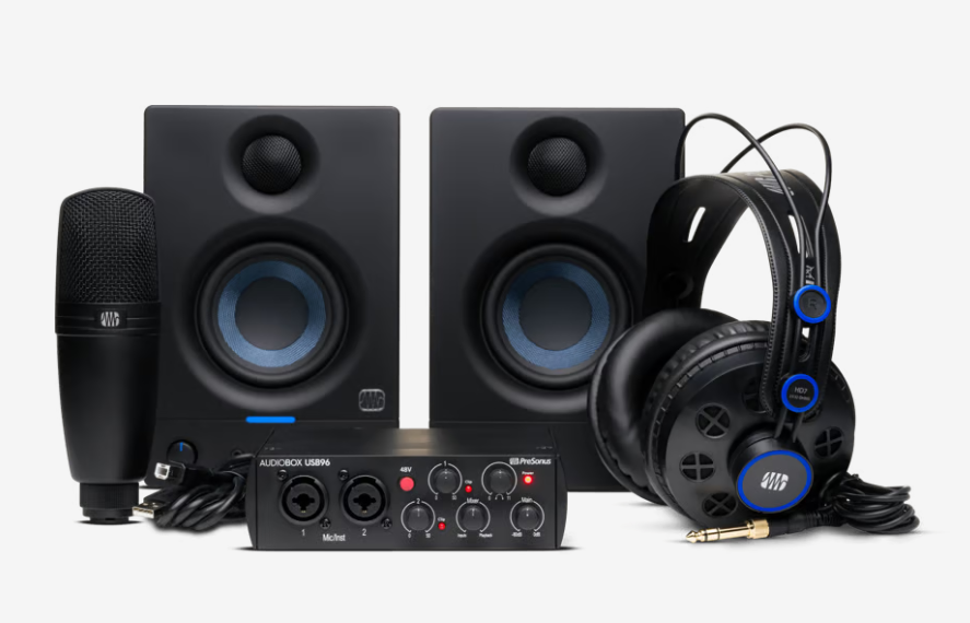| AudioBox 96 Interface | High-Fidelity USB Interface | Resolution: 24-bit/96 kHz. Preamps: 2 Class A mic/instrument preamps. Inputs/Outputs: 2x2 Simultaneous I/O (Combo inputs, 1/4" TRS Main Outputs). Power: USB Bus-Powered (+48V Phantom Power for Mics). |