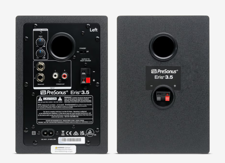 | Eris E3.5 Gen 2 Monitors (Pair) | Accurate Desktop Studio Monitors | Drivers: 3.5" Woven Composite Woofer, 1" Silk-Dome Tweeter. Amplification: 50W Class AB (25W per speaker). Frequency Response: 80 Hz – 20 kHz. Controls: High and Low Frequency Acoustic Tuning controls. |