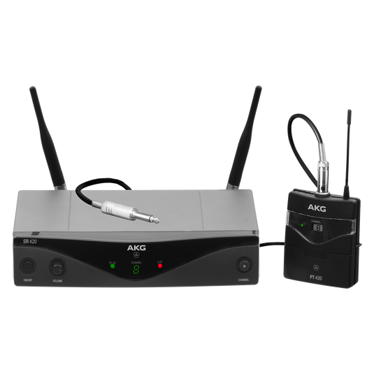 WMS420 is a professional multi-channel wireless microphone system with pilot tone transmission to prevent unwanted noise. The Instrumental Set includes a PT420 body-pack transmitter in a compact and rugged housing providing supreme audio quality for demanding guitars and e-basses. The space diversity receiver offers both a microphone level and a line level output.