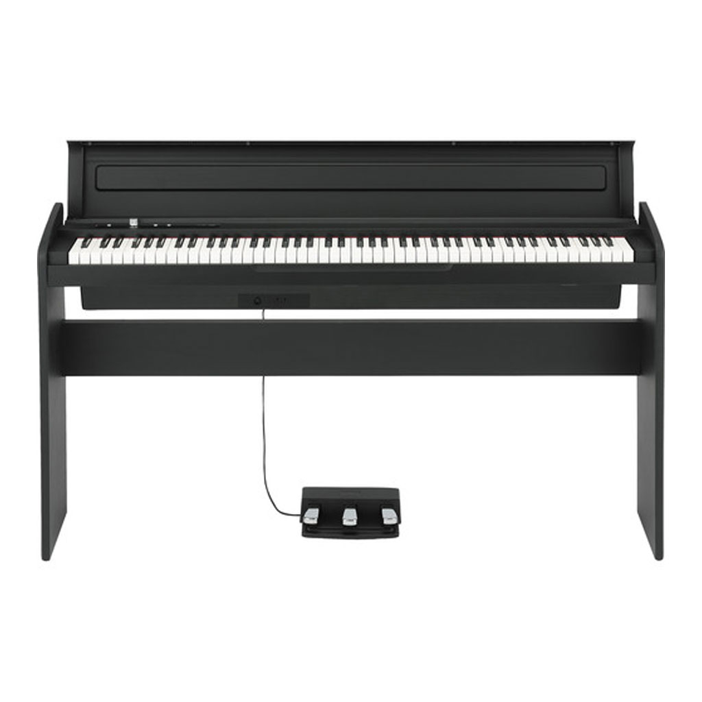 The LP-380 provides brilliant piano sound in a low-profile, slim design. The flat-top cabinet looks stylish even when the key cover is closed. The high-output amplifier and speakers accurately reproduce a realistic piano sound, while Korg's flagship RH3 keybed enables expressive performances.