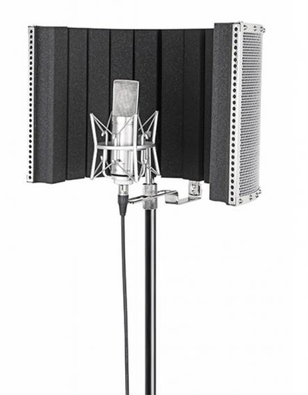 Large Size Foldable Microphone Shield, Consisting of Four Panels allowing for Maximum Curvature, Shield Size, 590 x 310mm. Free Standing for Table Top Mounting or Microphone Stand Mountable.